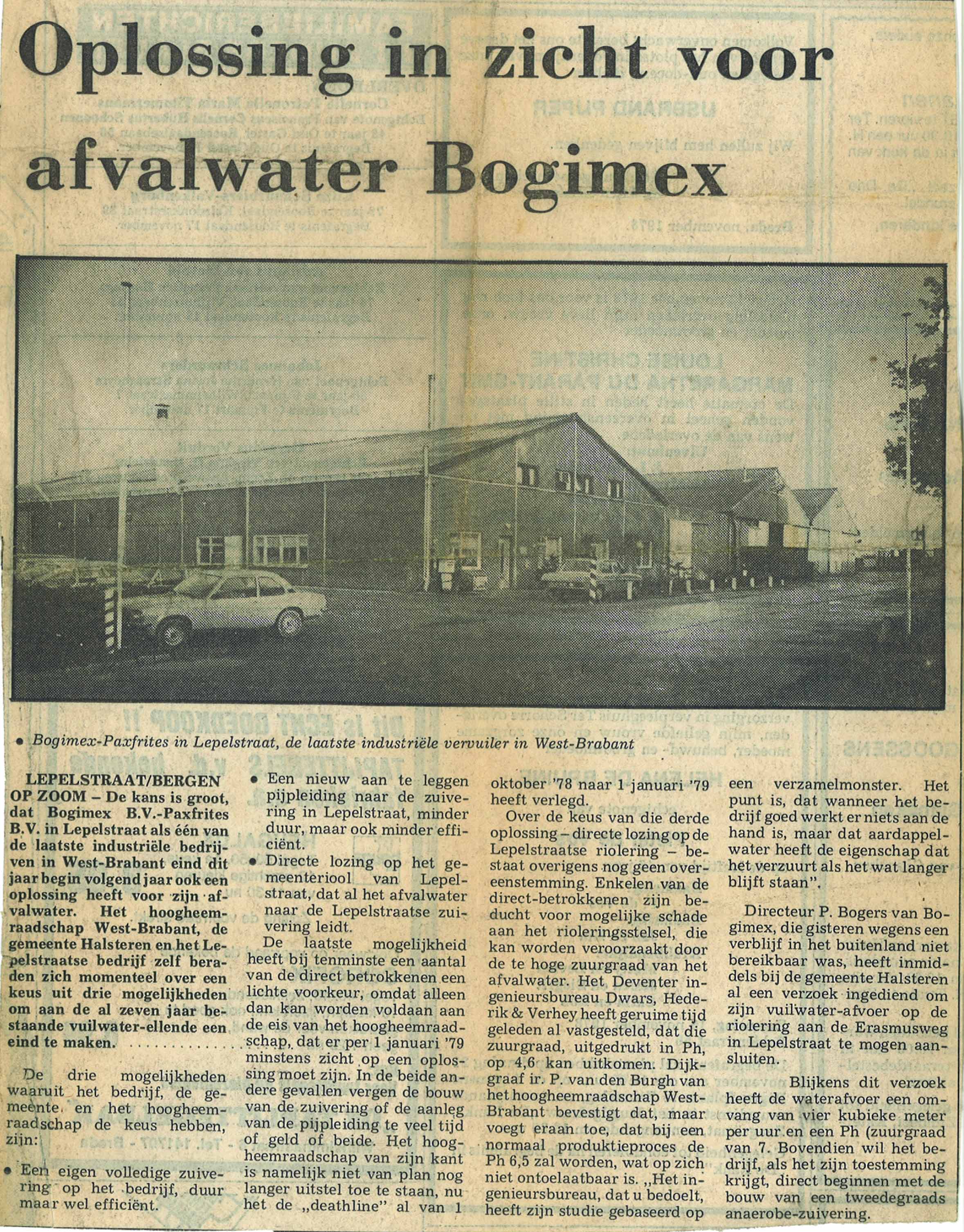 Piet Bogers kon een stuk land kopen van zijn vader aan de Slotweg in Lepelstraat. Daar werd toen het bedrijf Bogimex B.V. opgericht. Er werden toen bedrijfshallen gebouwd en een nieuwe (Dijkstra) sorteerinrichting geplaatst met een verpakkingslijn. Later werd er op datzelfde terrein een fritesfabriek gebouwd die ging draaien onder de naam Paxfrites B.V. Daarna werd er ook een machinefabriek gerealiseerd onder de naam ALGO (ALtijd GOed). Algo vervaardigde komplete machine- en productielijnen voor fritesfabrieken voor geheel Europa. In 1980 werden de activiteiten overgenomen door BRAVI BV (Brabantse Aardappel Verwerkende Industrie) welke later weer door Farm-Frites werd overgenomen.
