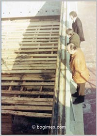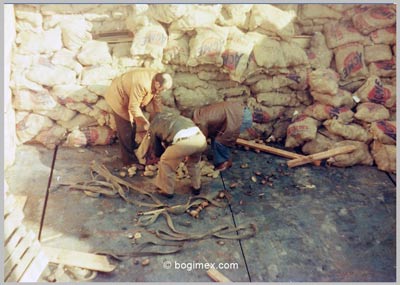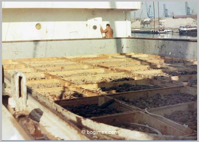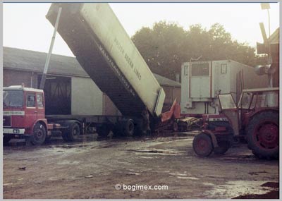 Gebouwen Bogimex vooraan de kantine met de Molenschot weegbrug en weeghok en dieselpomp. In de laagbouw was de fritesfabriek Paxfrites gevestigd. Daarachter de loodsen met de Dijkstra sorteerinstallatie en de aardappelbunkers en transportbanden van ALGO. Lossen ging met een Amac stortbak en doseerband naar een vol automatische vulbunker met een capaciteit van 100 ton aardappelen. Ontworpen door Frank Bogers en Frans Dhaese.