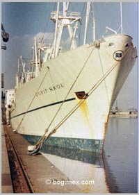 De 1e zending met 4000 ton aardappelen uit Amerika in de haven van Antwerpen.